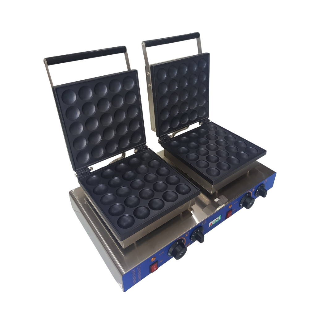 بان كيك 50 حبة بغطاء – جهاز عملي ومثالي لتحضير بان كيك صغير بشكل احترافي في المطاعم، الكافيهات، والفود ترك يتميز الجهاز بقدرة 3600 واط مع تحكم بدرجة الحرارة من 50-300 درجة مئوية، مما يضمن سرعة في التسوية وتوزيع حراري متساوي الجهاز مزود بغطاء علوي يسهل عملية الاستخدام ويمنع تطاير الحرارة، مع تصميم مزدوج يوفر لك إنتاج 50 قطعة بان كيك في وقت واحد بكفاءة عالية مصنوع من خامات متينة مقاومة للصدأ.